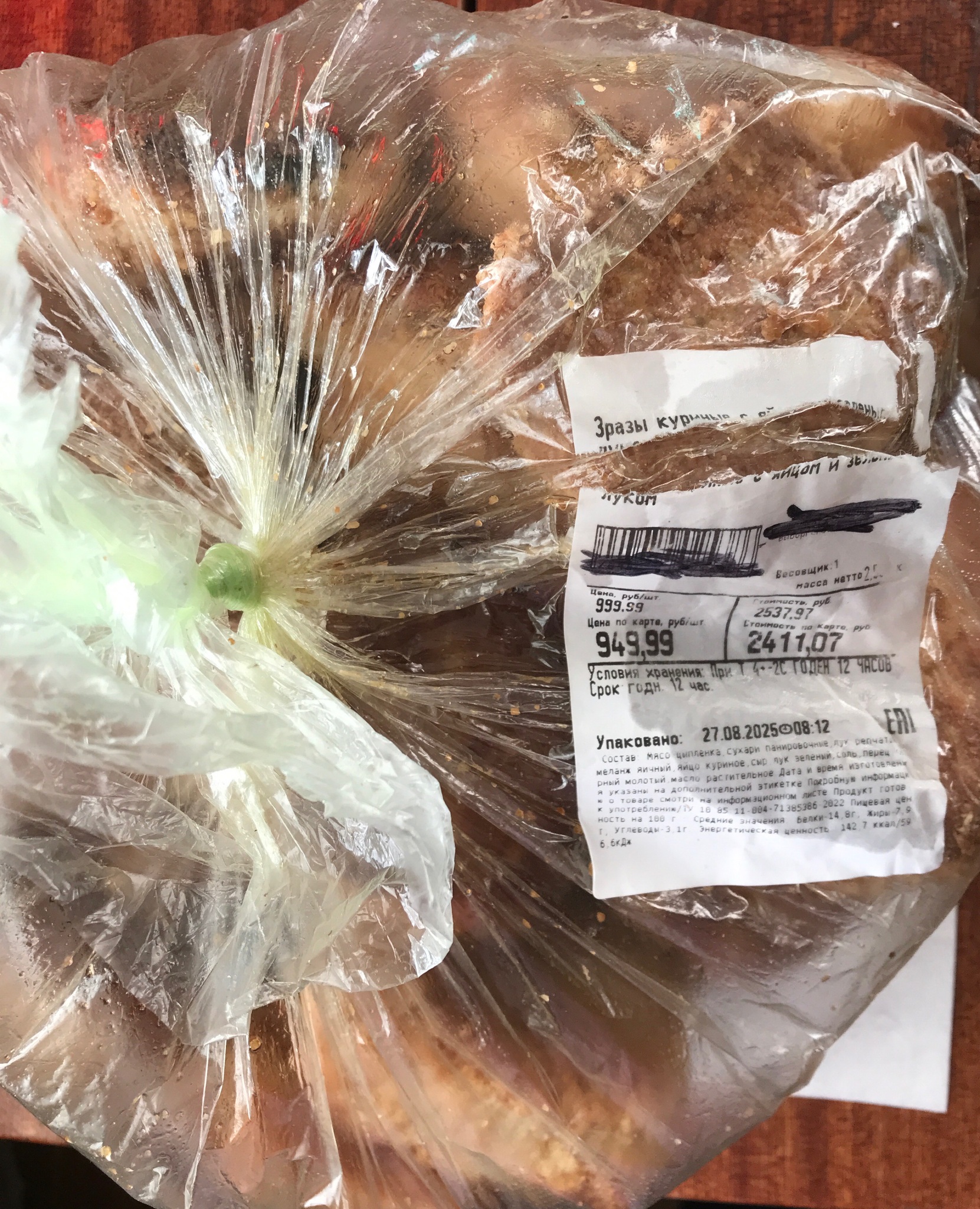 Зразы куриные яйцом и зелёным луком 2,5 кг